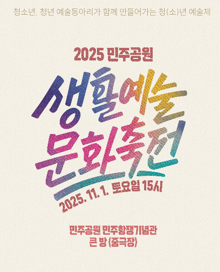 | 03 | 민주공원, 생활예술문화축전 ‘청(소)년 예술제’ 개최 | 2025-10-29 |