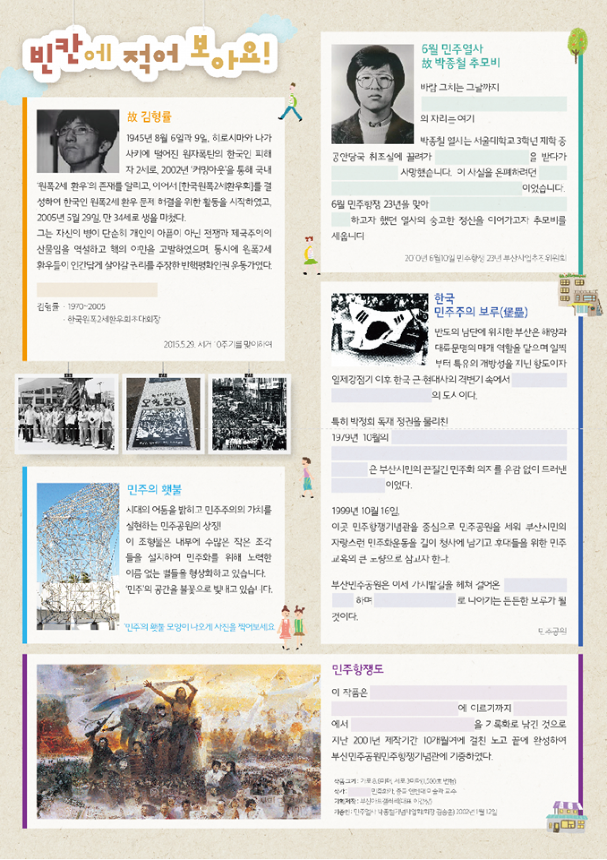 학습자료 전체 53건 전체(53) 영상자료(43) 체험학습자료(10) 영상자료 [전시] 민주공원 시민사진전 《나의 자연빛세상 #1 - 나, 그리고 우리》 민주공원 2020-10-08 영상자료 [전시] 5·18을 산점직시하다 민주공원 2020-08-26 영상자료 [전시] 민중미술가열전 Ⅴ 박경효 민주공원 2020-08-26 영상자료 [교육] 한국민주화운동 민주공원 2020-08-21 영상자료 [안내] 민주공원 안내 영상 민주공원 2017-02-01 영상자료 [교육] 촛불 이야기 민주공원 2016-03-18 영상자료 [안내] 민주의 횃불 민주공원 2014-11-07 체험학습자료 [기타] 십자말퀴즈 학습지 민주공원 2022-11-02 체험학습자료 [민주공원] 민주공원 이야기책 민주공원 2021-06-28 체험학습자료 [민주공원] 민주공원 색칠놀이 민주공원 2020-08-26 체험학습자료 [민주공원] 민주주의 여행 민주공원 2020-06-17 체험학습자료 [민주항쟁기념관] 민주주의 여행 민주공원 2017-02-01 처음 1페이지 2페이지 3페이지 열린4페이지 5페이지 맨끝 학습자료 검색 검색대상 제목 내용 제목+내용 검색어 필수 검색