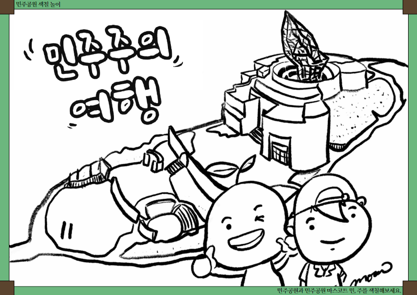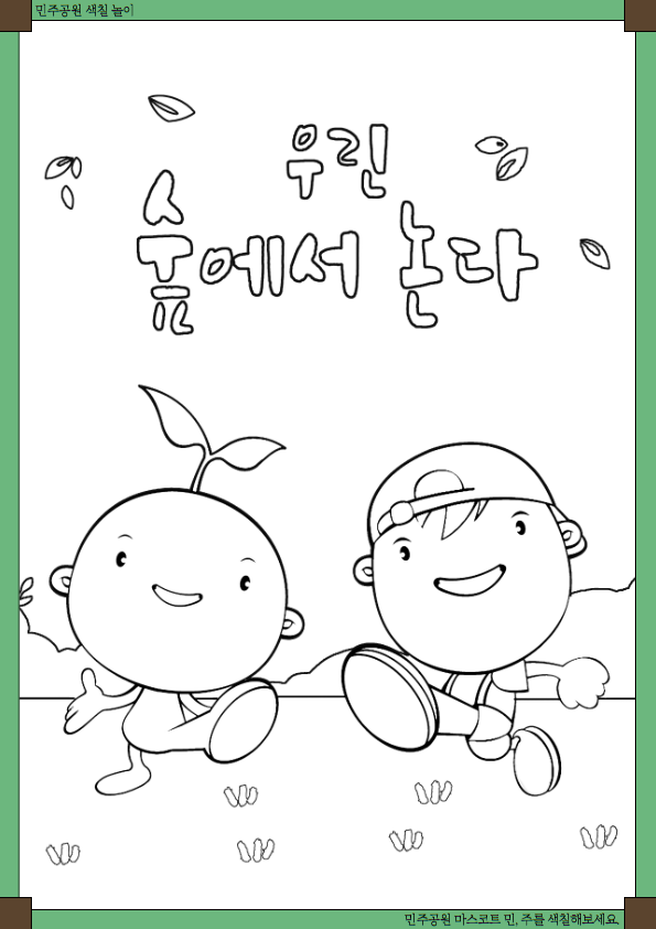 □ 학습 내용 : 민주공원과 민주공원 마스코트 민, 주, 도비 캐릭터를 색칠할 수 있는 학습지