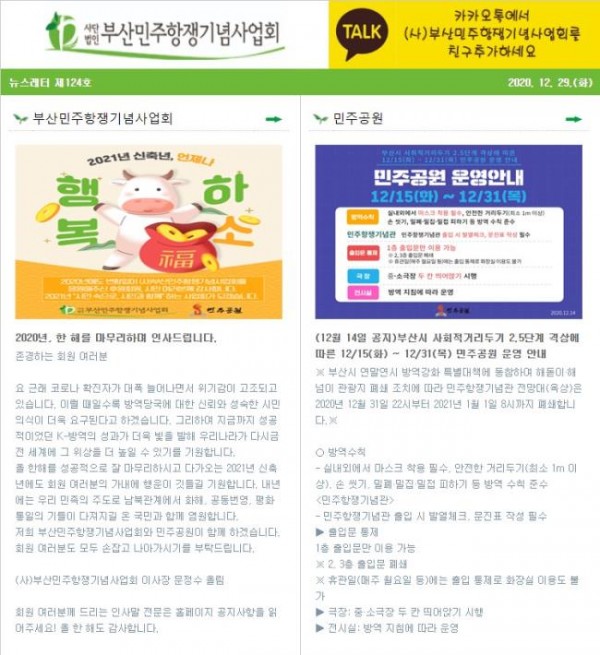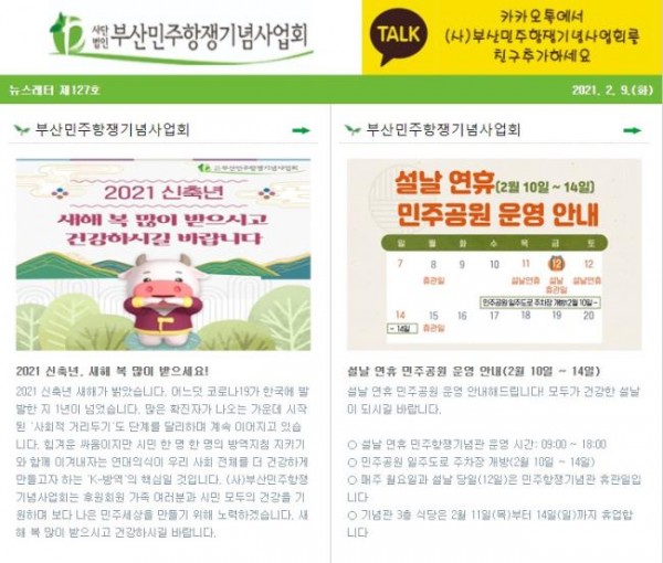 (2021.2.9)부산민주항쟁기념사업회 뉴스레터 제127호 - 2021 신축년 새해..