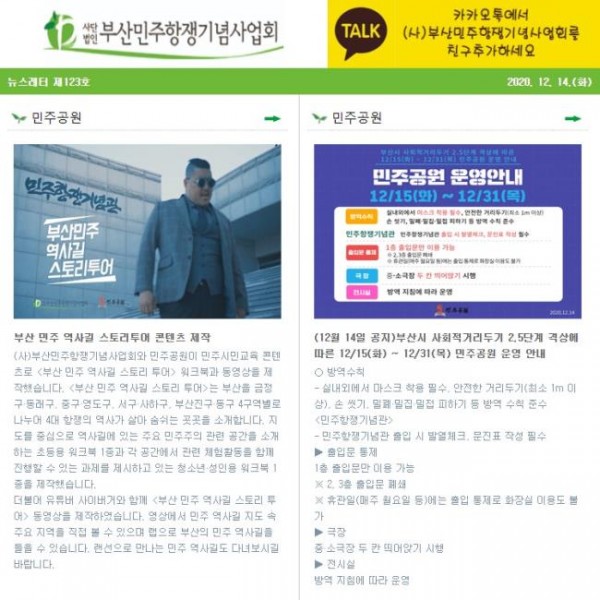 (2020.12.15)부산민주항쟁기념사업회 뉴스레터 제123호 - 민주공원 운영안내..