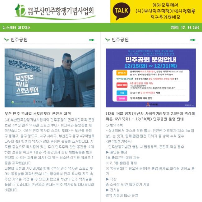 열람중(2020.12.15)부산민주항쟁기념사업회 뉴스레터 제123호 - 민주공원 운영안내..