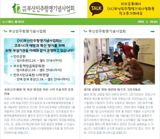 열람중(2020.3.10)부산민주항쟁기념사업회 뉴스레터 제103호 - 수탁·부설기관 운영..