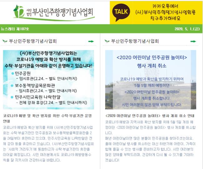 (2020.5.1)부산민주항쟁기념사업회 뉴스레터 제107호 - <2020 어린이날 ..