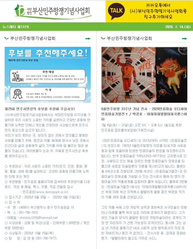 (2020.07.14)부산민주항쟁기념사업회 뉴스레터 제112호 - 제29회 민주시민..