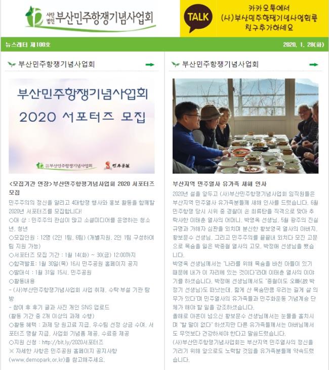 (2020.01.28)부산민주항쟁기념사업회 뉴스레터 제100호- 부산민주항쟁기념사업..