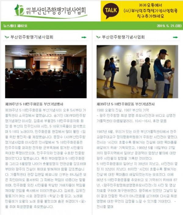 (2019.5.21)부산민주항쟁기념사업회 뉴스레터 제82호 - 제39주년 5·18민..