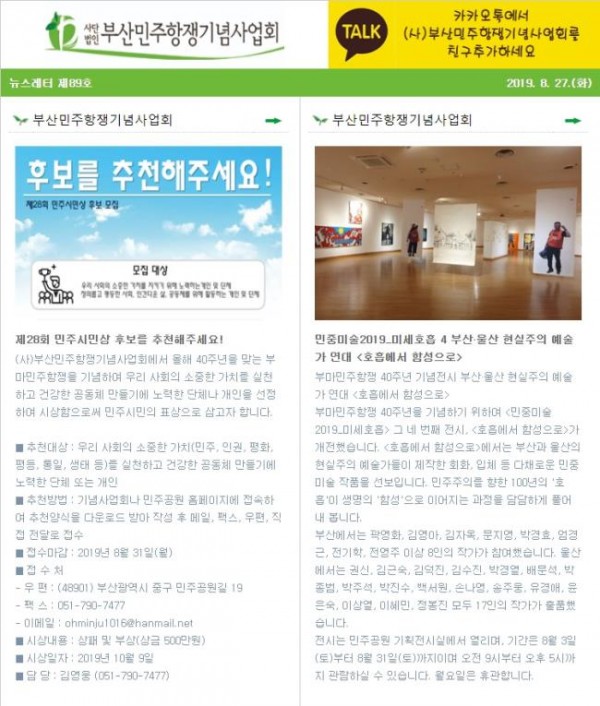 (2019.7.16)부산민주항쟁기념사업회 뉴스레터 제86호 - 제28회 민주시민상 ..