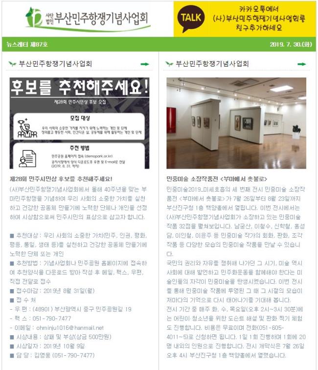 (2019.7.30)부산민주항쟁기념사업회 뉴스레터 제87호 - 민중미술 소장작품전 ..