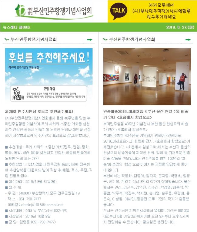 (2019.8.13)부산민주항쟁기념사업회 뉴스레터 제88호 - <호흡에서 함성으로> 개전