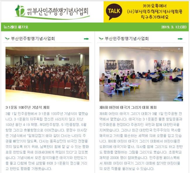 (2019.3.12)부산민주항쟁기념사업회 뉴스레터 제77호 - 3·1운동 100주년..