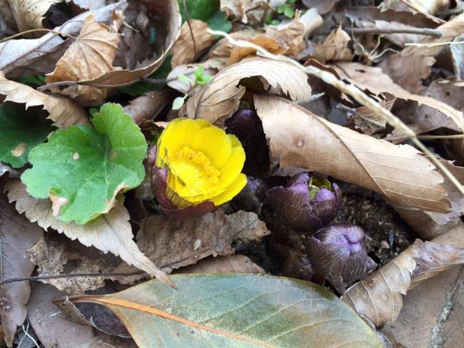 민주공원에 '얼음새꽃'이 피었습니다. 일명 복수초라고 알려져 있습니다.