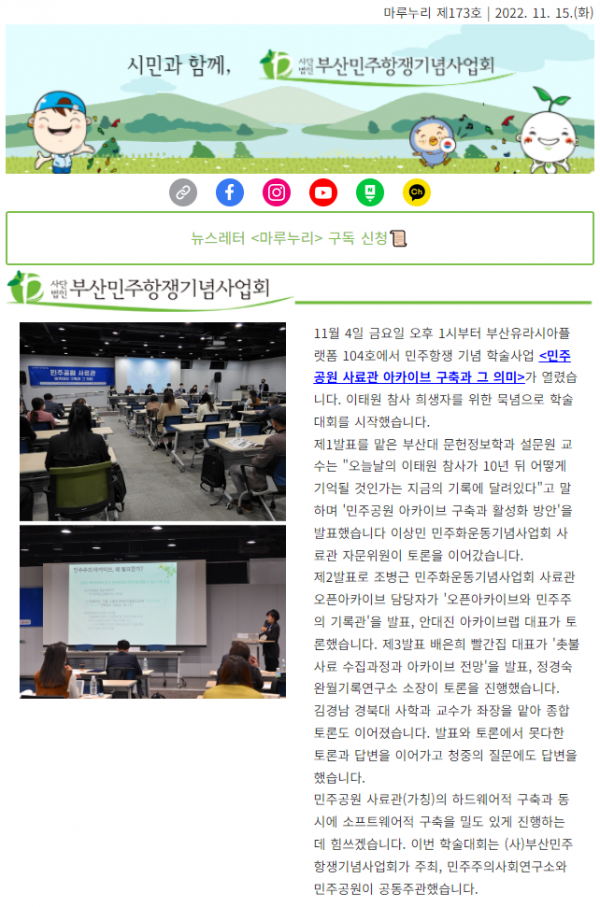 (2022.11.15) <마루누리> 173호 - <민주공원 사료관 아카이브 구축과 ..