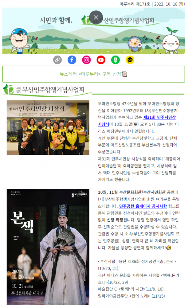 (2022.10.18.) <마루누리 171호> - 제31회 민주시민상 시상식