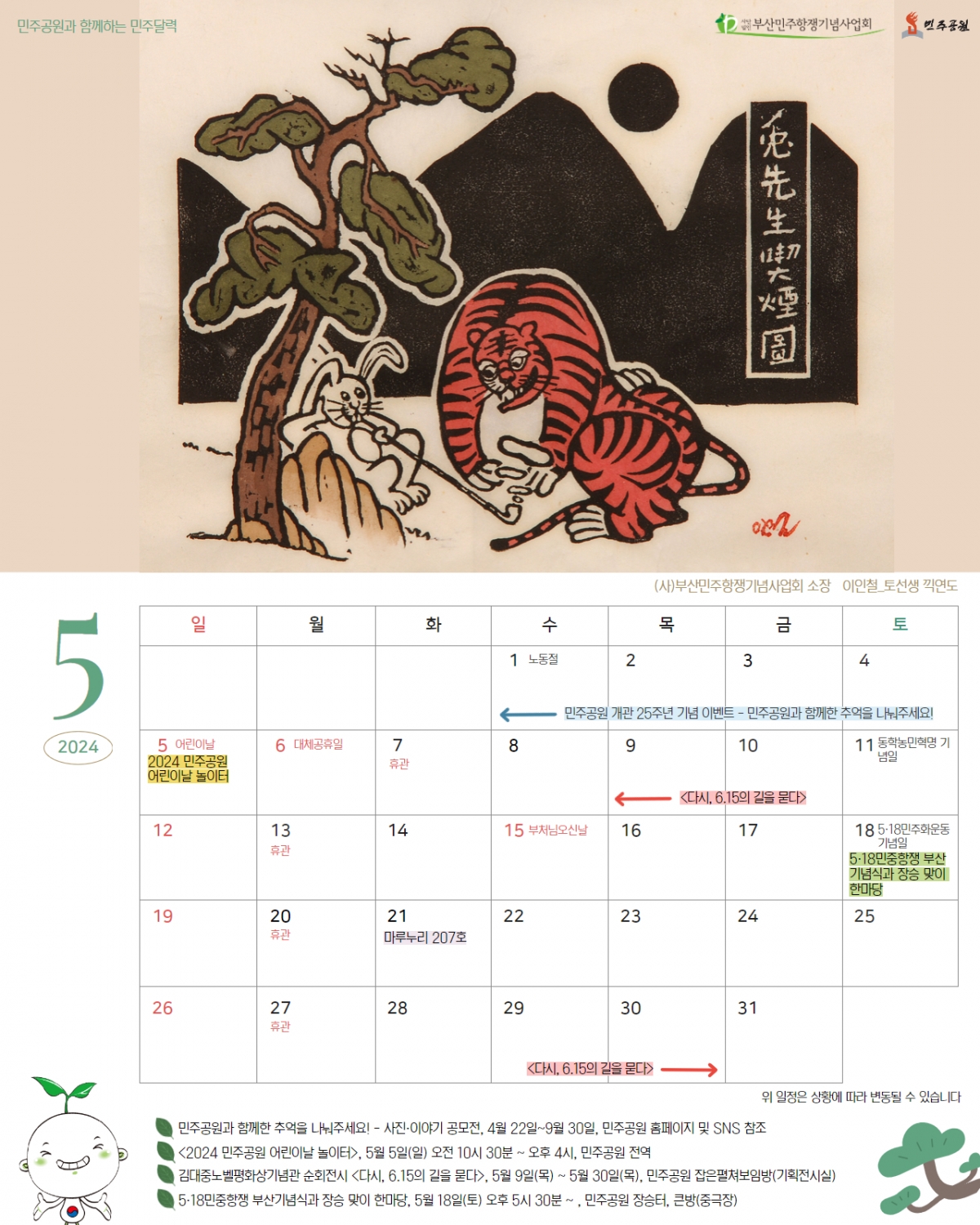 민주공원과 함께하는 2024년 5월 민주달력
