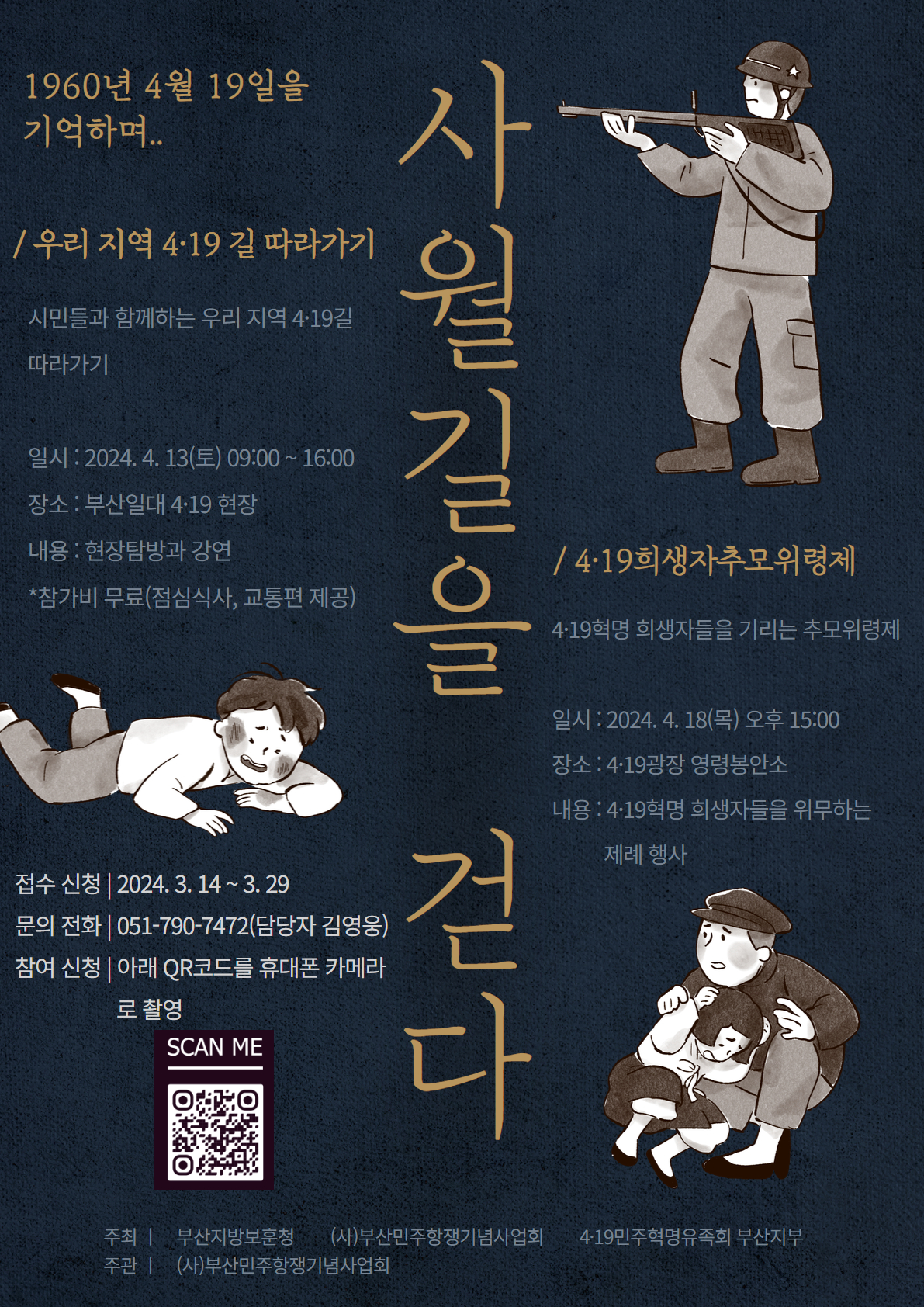(사)부산민주항쟁기념사업회에서는 4·19혁명 64주년을 맞이하여 <우리지역 4·19길 따라가기> 를 개최합니다. 헌법 전문에 수록된 4·19혁명의 역사와 숭고한 가치, 우리 지역 만의 4·19혁명의 모습을 교육과 탐방, 행사 참여 등 다양한 모습으로 시민 여러분과 함께 나누며 따뜻하고 의미 있는 4월을 맞이하려 합니다.많은 참여 바랍니다.