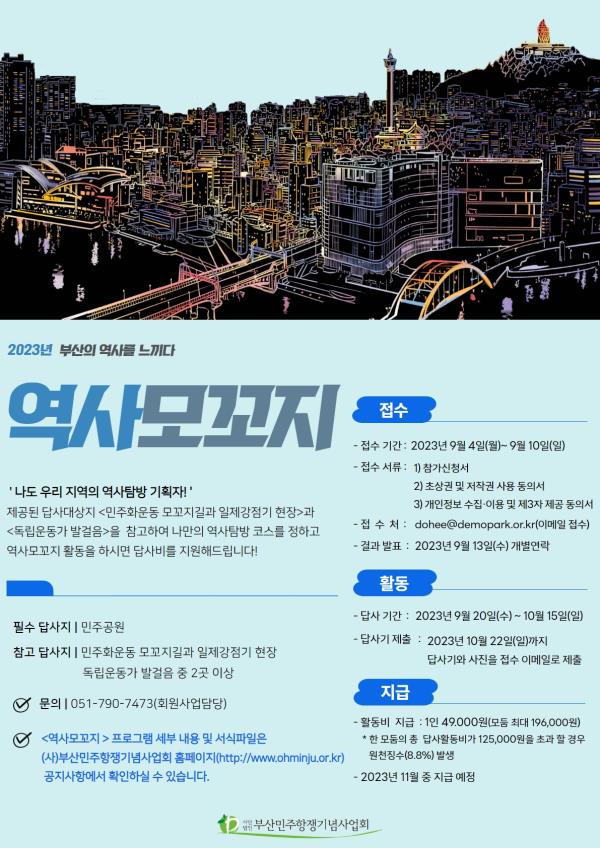 2023 (사)부산민주항쟁기념사업회 <역사모꼬지> 참가자/참가 모둠 접수