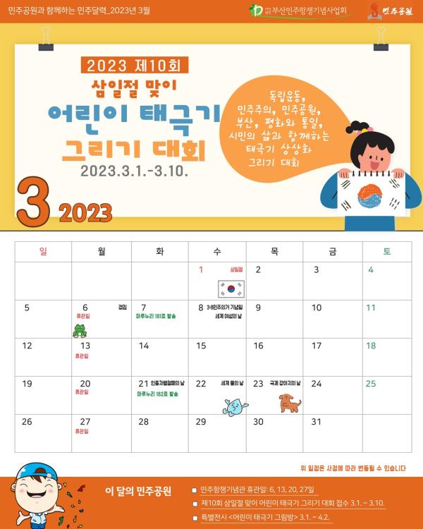 민주공원과 함께하는 2023년 3월 민주달력