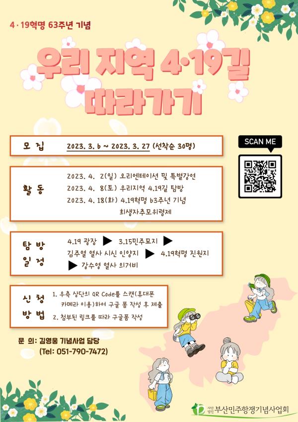 (사)부산민주항쟁기념사업회에서는 4·19혁명 63주년을 맞이하여 <우리지역 4·19길 따라가기> 를 개최합니다.