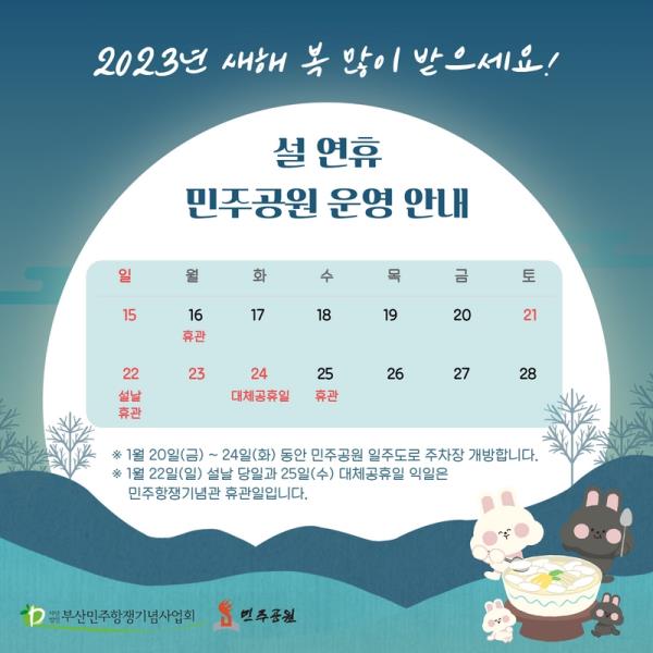 2023년 설날 연휴 민주공원 운영 안내