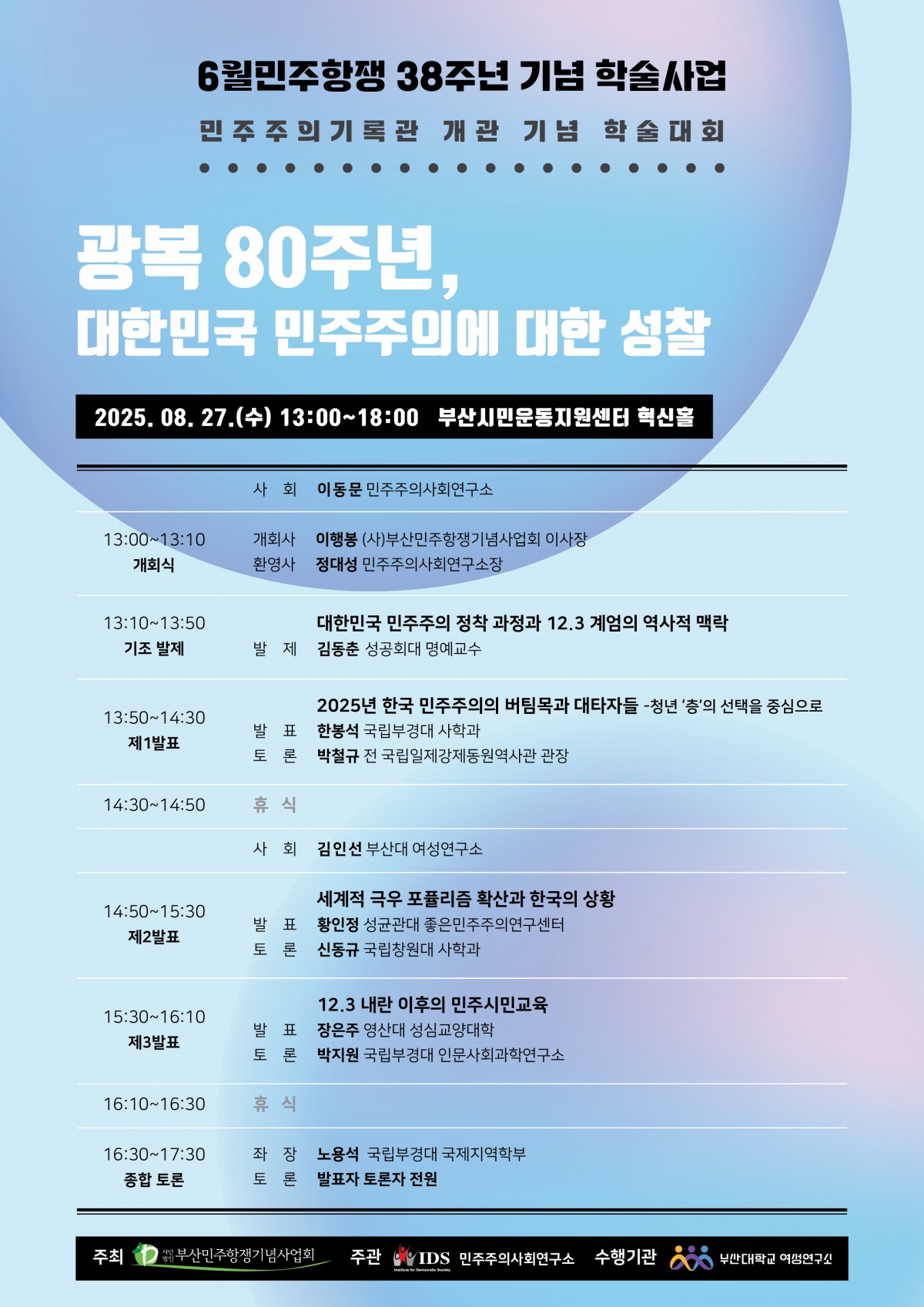 6월민주항쟁 38주년 기념 학술심포지엄<광복 80주년, 대한민국 민주주의에 대한 성찰>