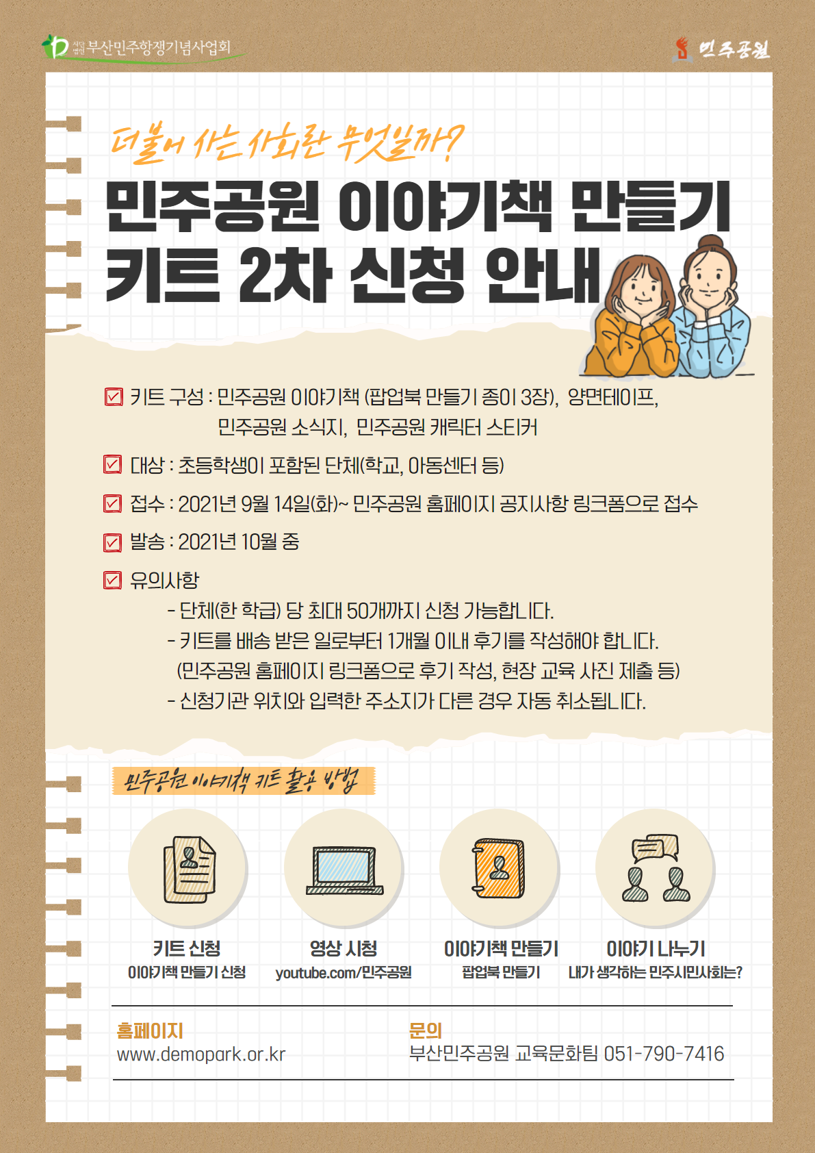 - 첨부파일 : 민주공원 이야기책 만들기 키트 2차 신청 안내_포스터이미지.png (708.0K) - 다운로드
