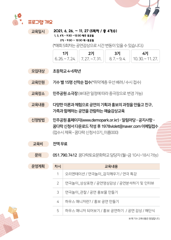 ▷ 문의: 051-790-7412 (꿈다락토요문화학교 담당자) ※ 월~금요일 10시~18시