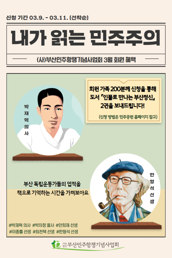 [안내] 2021년 3월 (사)부산민주항쟁기념사업회 회원 혜택 <내가 읽는 민주주의>