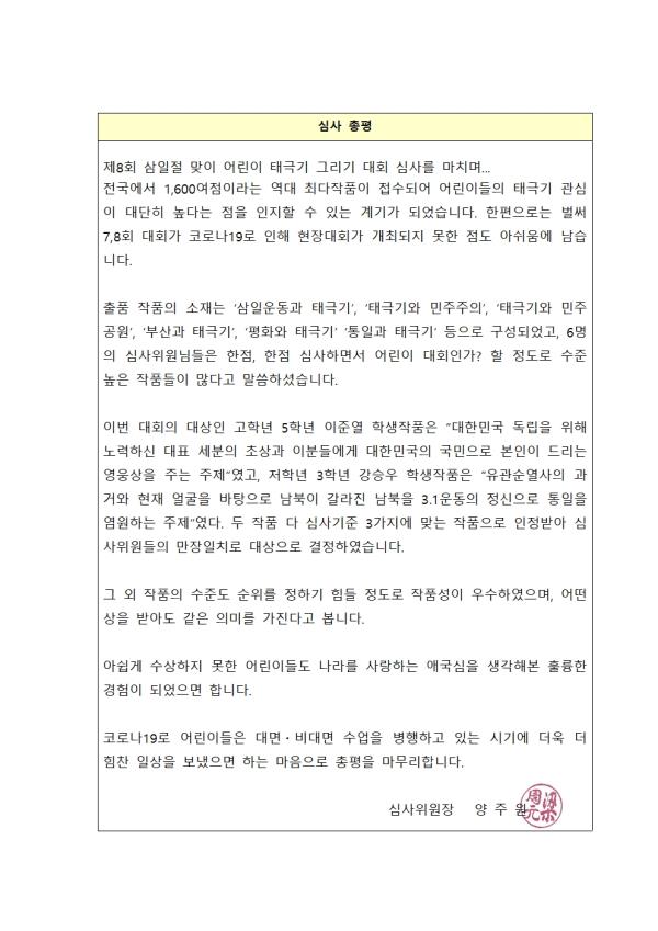 제8회 삼일절 맞이 어린이 태극기 그리기 대회 수상자 발표