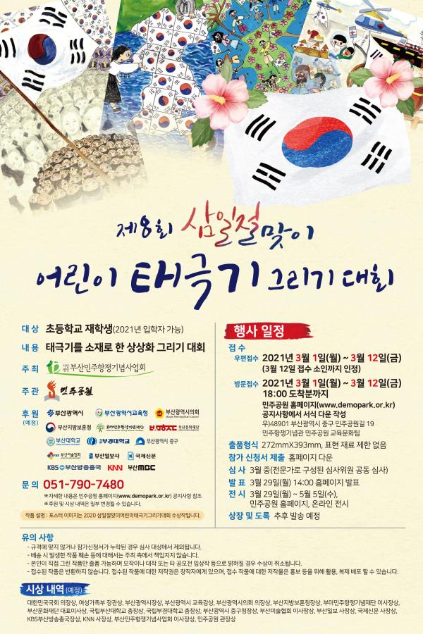 우)48901 부산광역시 중구 민주공원길 19 민주항쟁기념관 교육문화팀 <태극기 그리기 대회 담당>