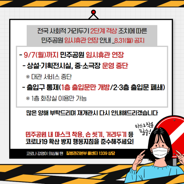 - 9/7(월)까지 민주공원 임시휴관 연장