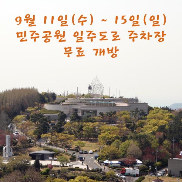 - 9월 11일(수) ~ 15일(일) 민주공원 일주도로 주차장 무료 개방