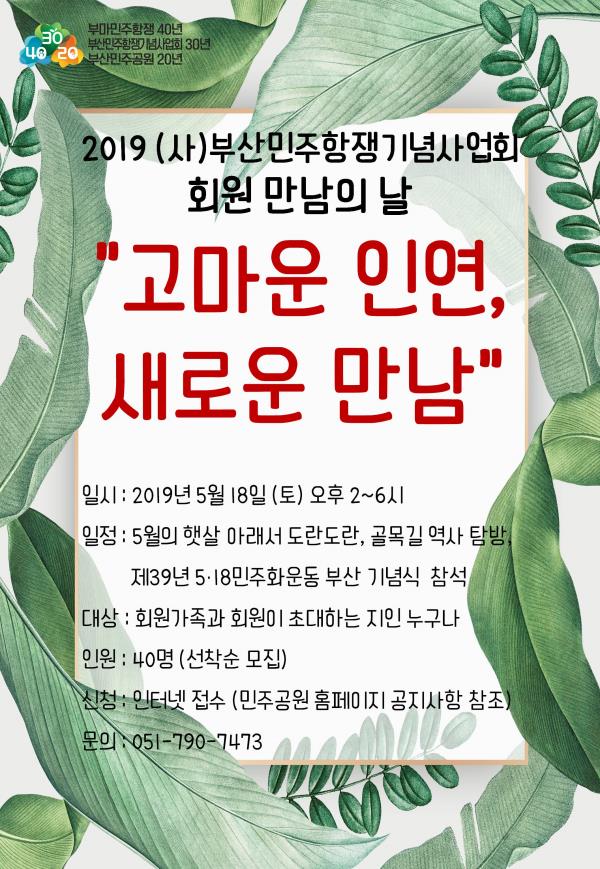 2019 (사)부산민주항쟁기념사업회 회원 만남의 날 “고마운 인연, 새로운 만남”