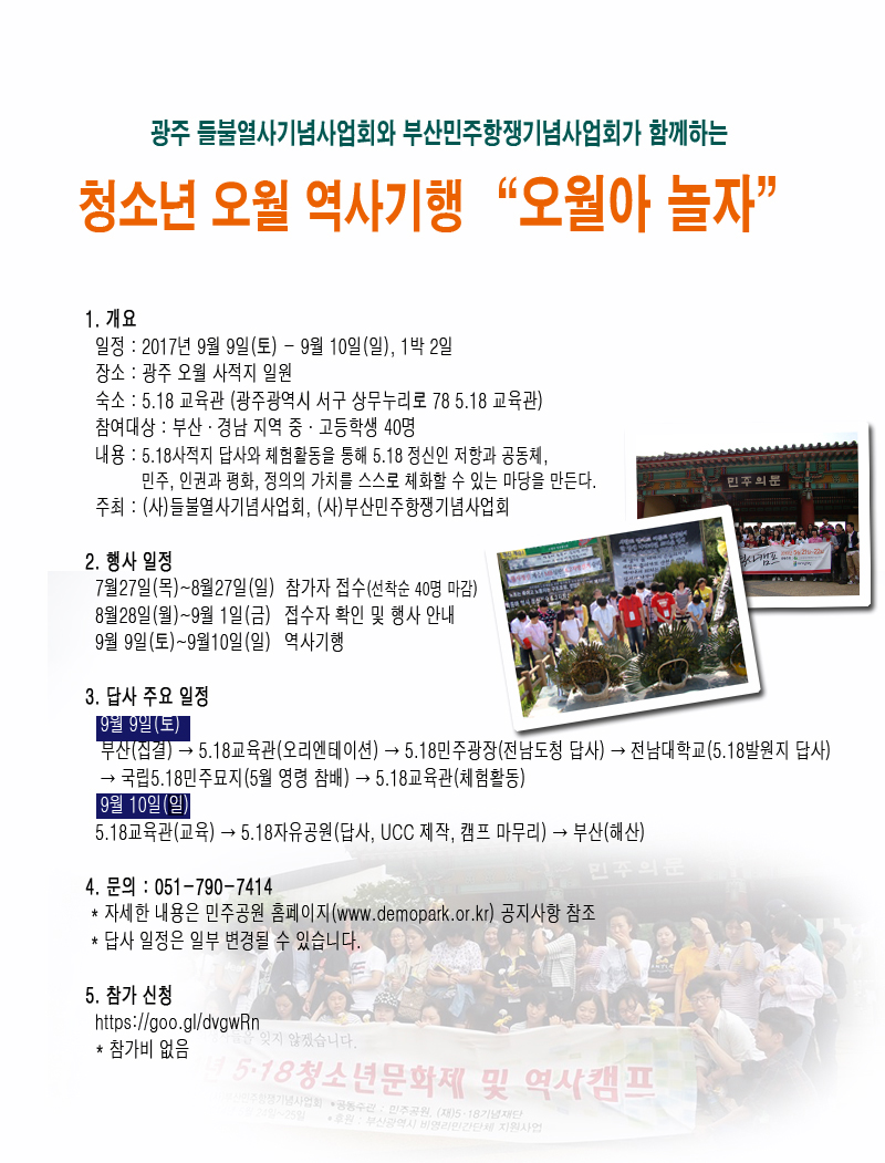 * 자세한 내용은 민주공원 홈페이지(www.demopark.or.kr) 공지사항 참조