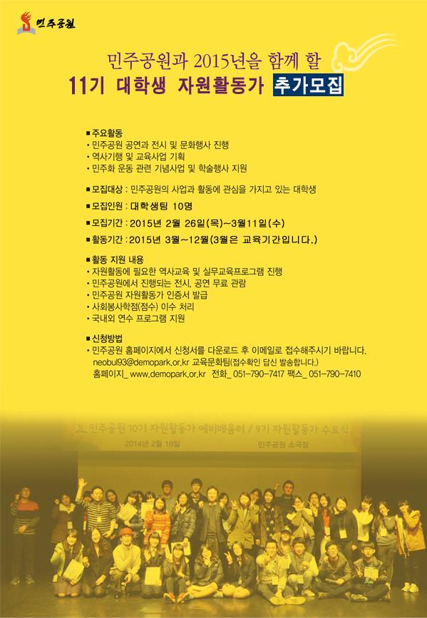 민주공원 대학생 자원활동가를 추가 모집합니다.
