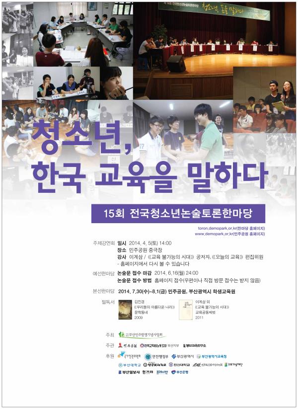 15회 전국청소년논술토론한마당을 개최합니다.