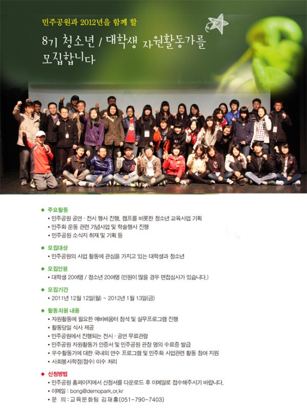 민주공원에서 2012년을 함께 할 자원활동가를 모집합니다.