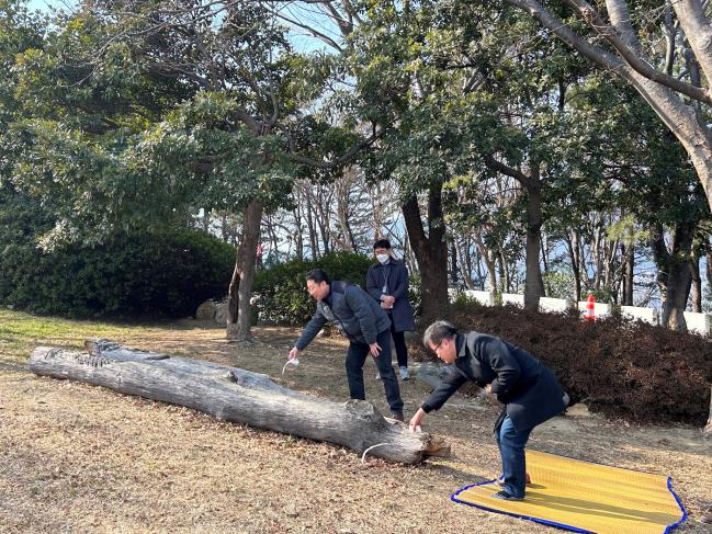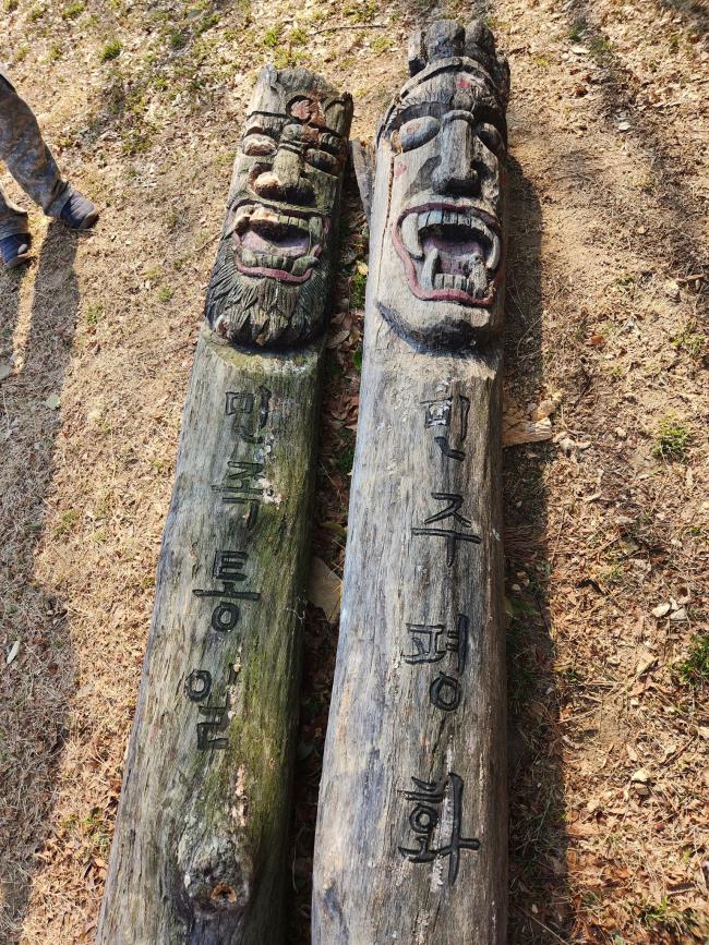 장승의 아랫부분이 조금씩 썩어들어가 안전사고를 방지하고자 오늘 직원들이 모여 두 장승을 뽑고 막걸리 한 잔을 올리며 보내었습니다. 민주공원 잔디광장에 새로운 장승이 설 때에도 함께해주시길 바랍니다.