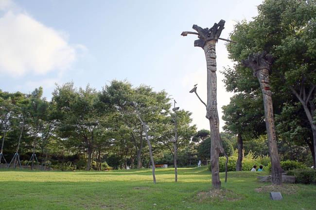 민주공원에 들어서자마자 보이는 잔디광장의 또 다른 이름은 '장승터'입니다. '민족통일 대장부'와 '민주평화 여장부' 장승이 입구를 지키고 있기 때문인데요. 두 장승은 비민주적이고 겨레의 하나됨을 가로막은 온갖 삿된 것들로부터 민주공원을 지켜주고 있었습니다.