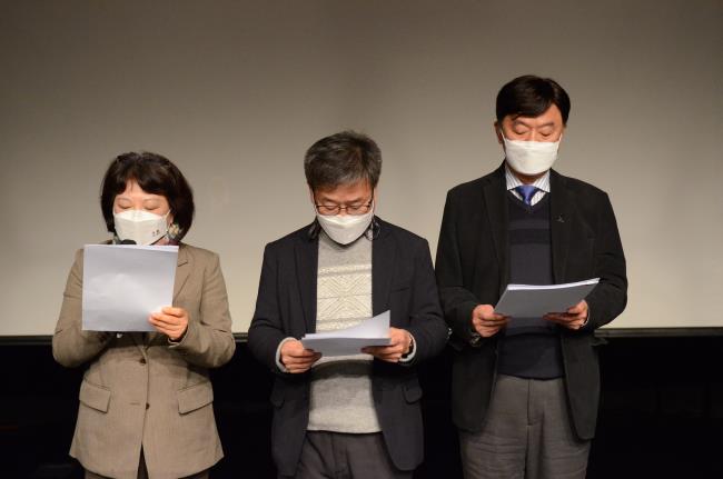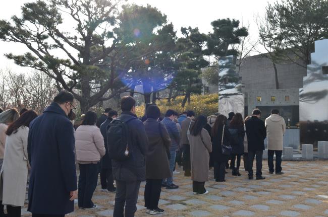 부산시민운동단체연대(상임대표 오문법 부산YMCA 사무총장)는 매년 새해가 되면 신년인사회를 가집니다. 1월 6일 민주공원에 모여 민주열사에 참배하고, 지난해 활동을 돌아 올해 사업 기조와 주요사업계획을 논의했습니다. 공동대표인 김정환 부산YWCA 사무총장과 김종기 (사)부산민주항쟁기념사업회 상임이사, 윤경태 부산생명의숲 공동대표가 신년선언문을 낭독하기도 했습니다.
