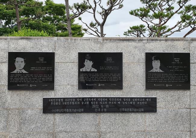 2023년 설을 앞두고 부산지역 민주열사 유가족을 뵙고 인사드렸습니다. 박종철 열사의 고모인 박정애 시인, 황보영국 열사의 형인 황보시목 님, 이태춘 열사의 어머니인 박영옥 님께 설인사와 함께 명절 선물을 전해드렸습니다. 세 열사의 모습과 그들이 남긴 이야기는 민주공원 넋기림마당 추모의 벽인 늘빛드레에 새겨져 있습니다.
