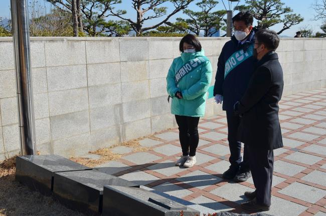 제20대 대통령선거 기본소득당 오준호 대통령 후보와 용혜인 기본소득당 국회의원이 2월 24일 오전 10시경 민주공원을 찾아 참배했습니다. 오준호 후보와 용혜인 의원은 민주주의를 위해 희생하신 민주열사와 애국영령에 대한 참배와 분향을 했습니다. 부산 열사들의 추모비가 있는 넋기림마당 오른편에서 황보영국, 이태춘, 박종철 열사의 추모비도 둘러보았습니다.