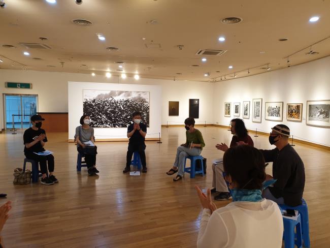참석 : 이인철(작가), 구자상(환경운동가), 이나바 마이(광운대 교수, 민중미술 연구자), 김경화(원도심예술가협동조합 창 이사장), 윤은숙(민족미술인협회 울산지회장), 박선정(달리미술관 관장), 김영아(부산민예총 시각예술위원회), 권미연(윤리교사), 김종기(민주공원 관장), 이동문(민주공원 학술사료팀장), 신용철(민주공원 학예실장)