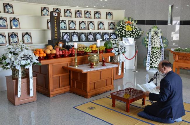 4·19혁명 61주년을 맞아 4·19혁명 희생자 추모 위령제가 4월 18일 오후 3시부터 4.19광장에서 열렸습니다. 코로나19로 몇 분의 유족만 모시고 진행했습니다. 권율정 부산지방보훈청장, 김종기 부산민주공원 관장, 이재동 4·19혁명희생자유족회 부산광역시지부장, 강호영 부산광역시 보훈지원팀장 등이 참석했습니다.