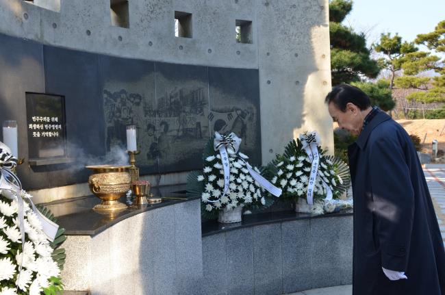 (사)부산민주항쟁기념사업회 임직원은 2020년 경자년을 시작하며 1월 2일 민주공원 넋기림마당(추념의 장)에서 참배를 하고 시무식을 가졌습니다. 문정수 (사)부산민주항쟁기념사업회 이사장, 김종기 (사)부산민주항쟁기념사업회 상임이사 겸 민주공원 관장 등 모든 임직원이 민주영령의 뜻을 기리며 헌화와 참배를 했습니다.