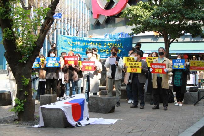 오늘 오전인 4월 9일 10시 30분부터 5·18민중항쟁의 진상 규명과 책임자 처벌을 외치며 분신한 황보영국 열사를 기리는 오월걸상(서면 롯데백화점 후문 인근) 앞에서 기자회견을 열었습니다.