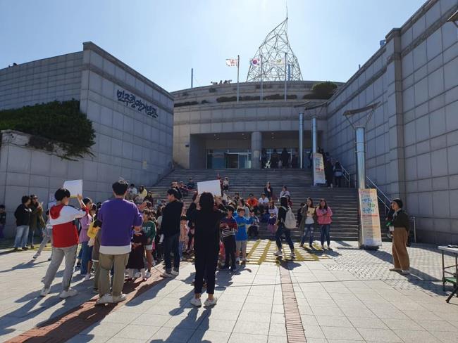 두 어린이의 사회로 제13회 어린이 평화 큰잔치 폐막 공연이 민주공원 큰방(중극장)에서 열렸습니다. 어린이들의 율동과 춤, 내가 생각하는 평화 말하기 등으로 부산어린이어깨동무, 포피스, 민주공원이 함께 준비한 제13회 어린이 평화 큰잔치를 마쳤습니다.
