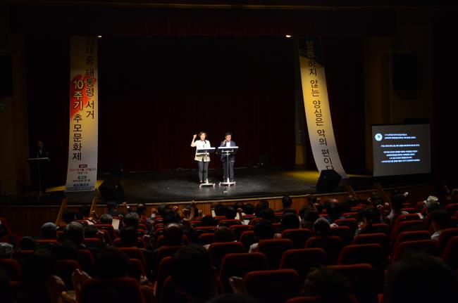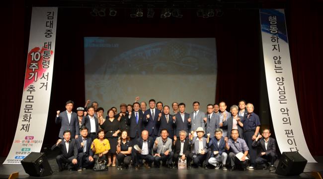 <김대중 대통령 서거 10주기 추모문화제>가 8월 28일 오후 7시부터 민주공원 큰방(중극장)에서 열렸습니다. 이번 추모문화제는 (사)부산민주항쟁기념사업회 등 김대중대통령 서거 10주기 추모문화제 준비위원회가 함께 열었습니다. 20년 전 민주공원 개관식에도 참석하셨던 김대중 대통령이 우리 곁을 떠난 지 벌써 10년이 되었습니다.