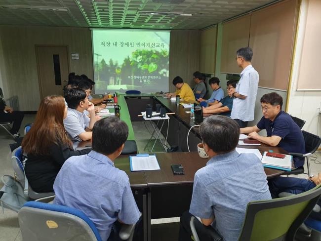 (사)부산민주항쟁기념사업회 수탁?부설기관 임직원들은 9월 10일(화) <직장 내 장애인 인식개선교육>을 들었습니다. 김형천 부산장애우권익문제연구소 소장님이 '장애'의 사회적 인식 등에 대해 얘기해주셨습니다.