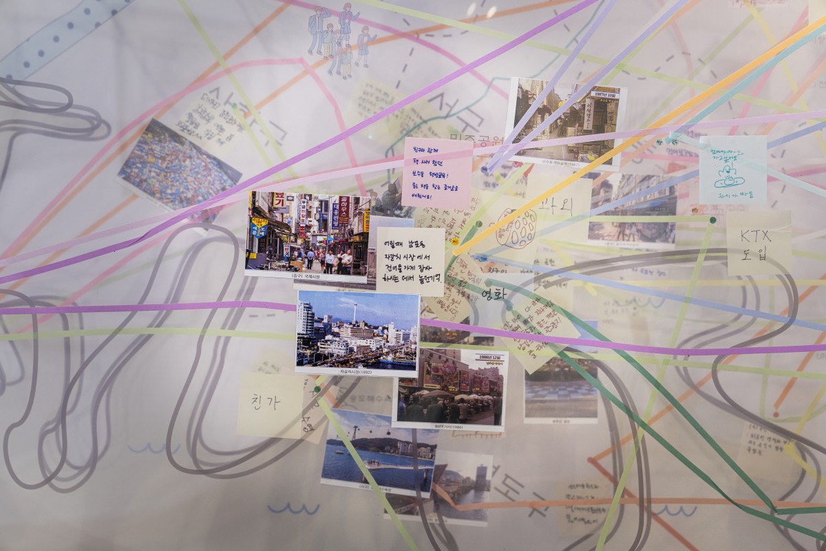 아울러 부산시립미술관과 함께 연계 교육프로그램 <기억지도-이어지는 이야기>를 운영했습니다. 부산의 장소에 대해 세대 간 기억을 나누고 기록하는 활동으로, 가족이 함께 지도 위에 자신의 기억을 글이나 그림으로 표현하고, 서로의 경험을 비교·이어가는 과정을 통해 가족의 이야기를 공유하는 프로그램이었습니다.